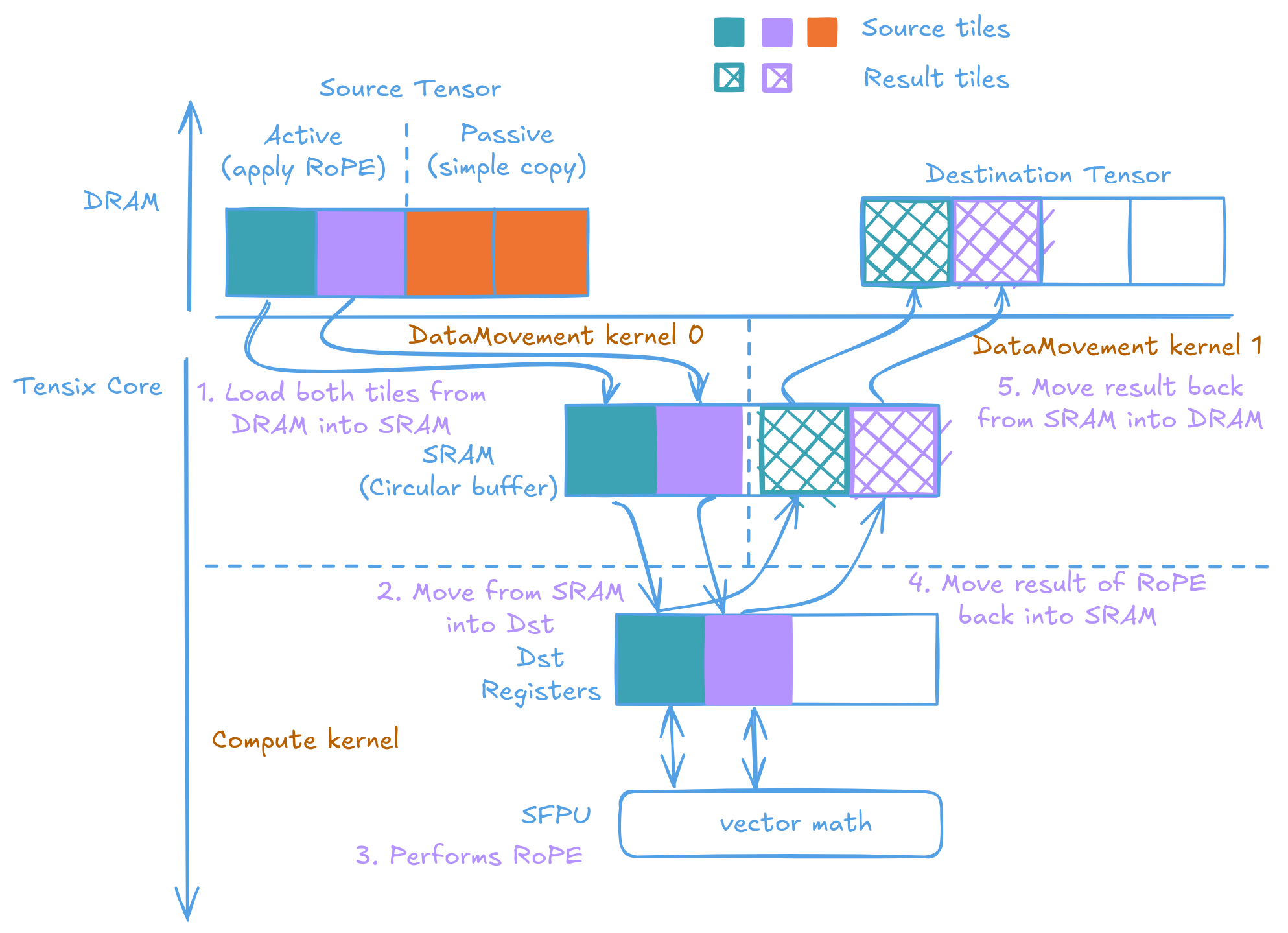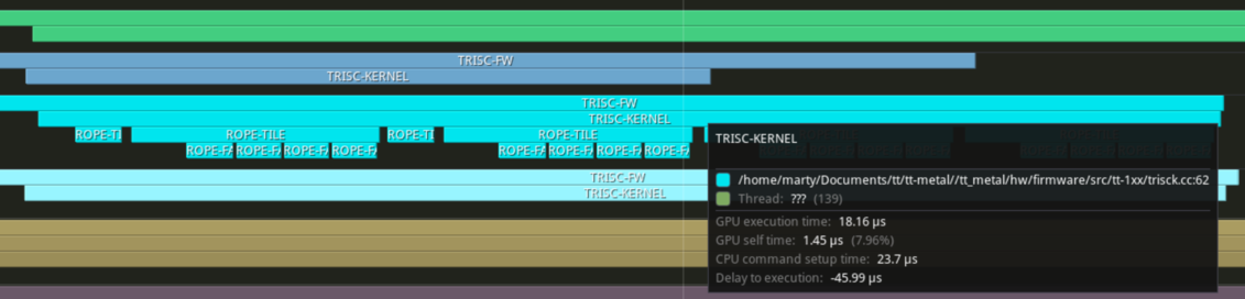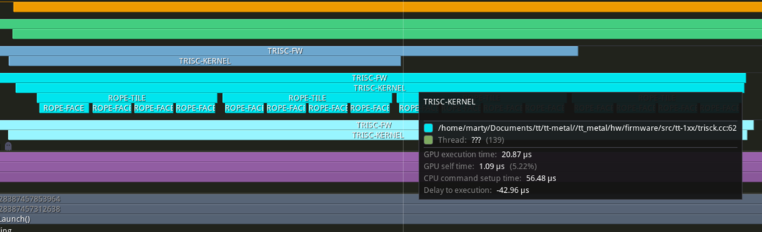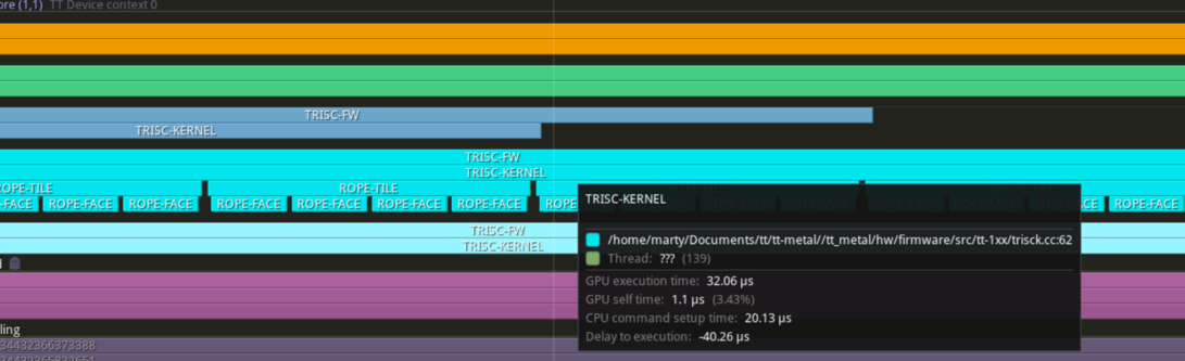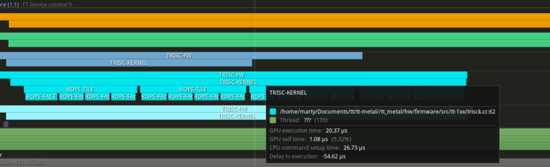 Rotary Position Embedding, or RoPE is a critical operations used in Large Language Models. Responsible of encoding positional information (where the token is in the sentence) into the embedding, so the model can distinguish between "the cat eats the bird" and "bird eats the cat". Ever since my journey starting to add a Tenstorrent backend into GGML. RoPE has always been falling back to the CPU. As TTNN although have it's own RoPE implementation, is fundamentally incompatible with the semantics GGML wants. I have been putting off writing my own RoPE support as I expect it to be a pain and hoping someone would Deus Ex Machina and give me a working version in a PR out of no where.