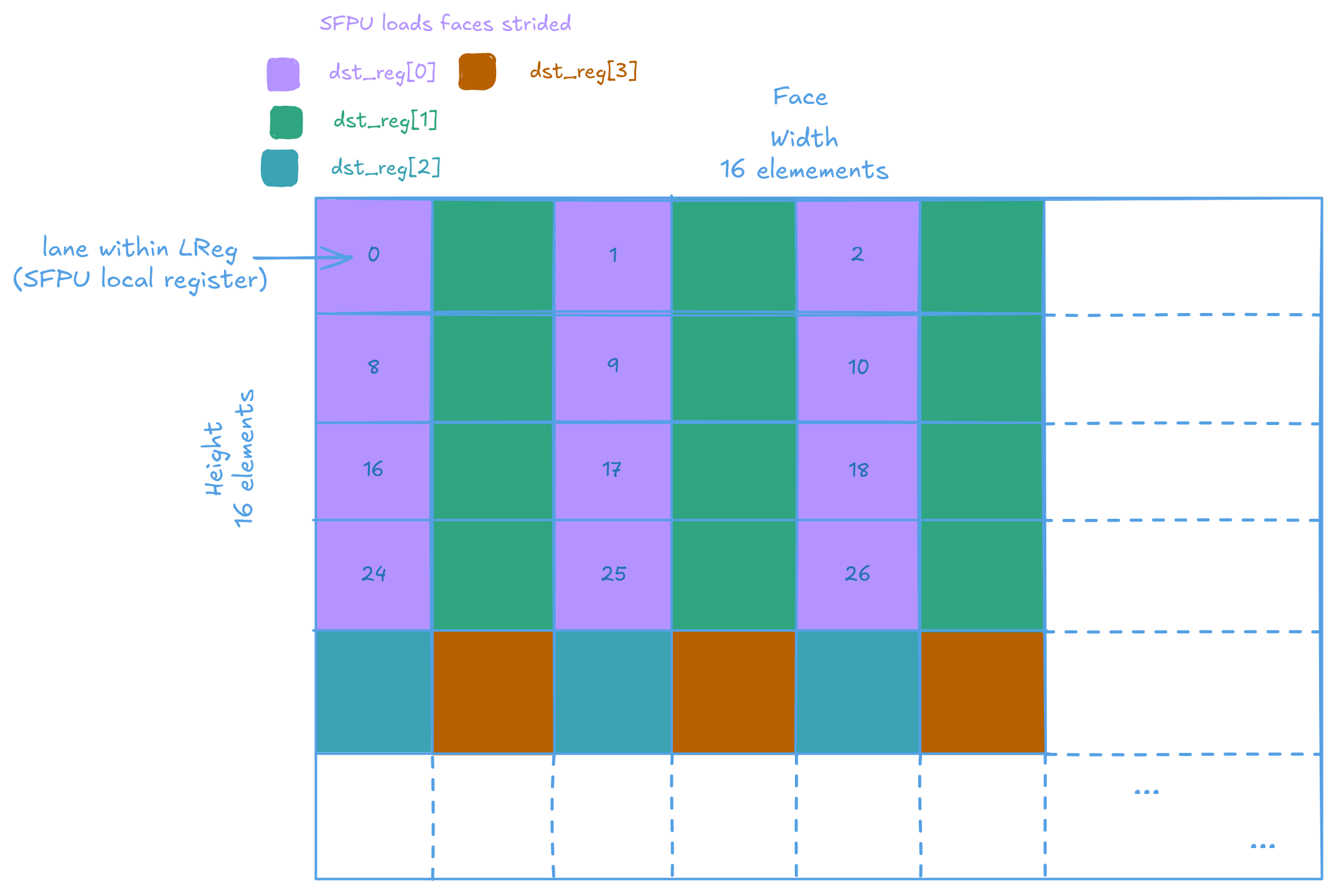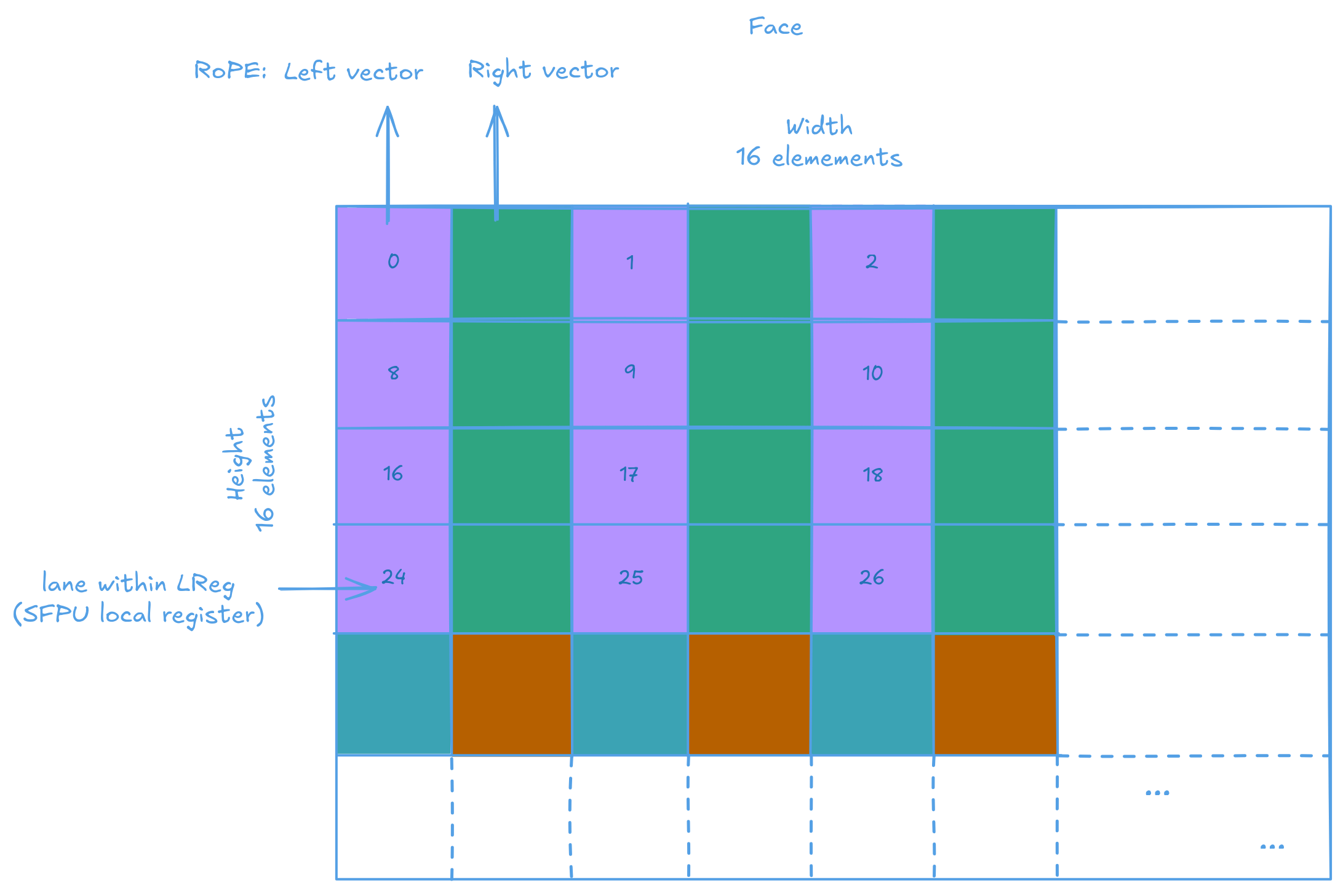 Sounds easy enough. For the NeoX variant we just load a new tensor and load from the first (logical) row of... ohh... SFPU loads works loading 4 rows at a time. I could manually broadcast the values using the reader kernel. But the RISC-V cores are slow and does not have much bandwidth to SRAM. I asked around internally and apparently the SFPTRANSP instruction can be abused into broadcasting values across lanes.