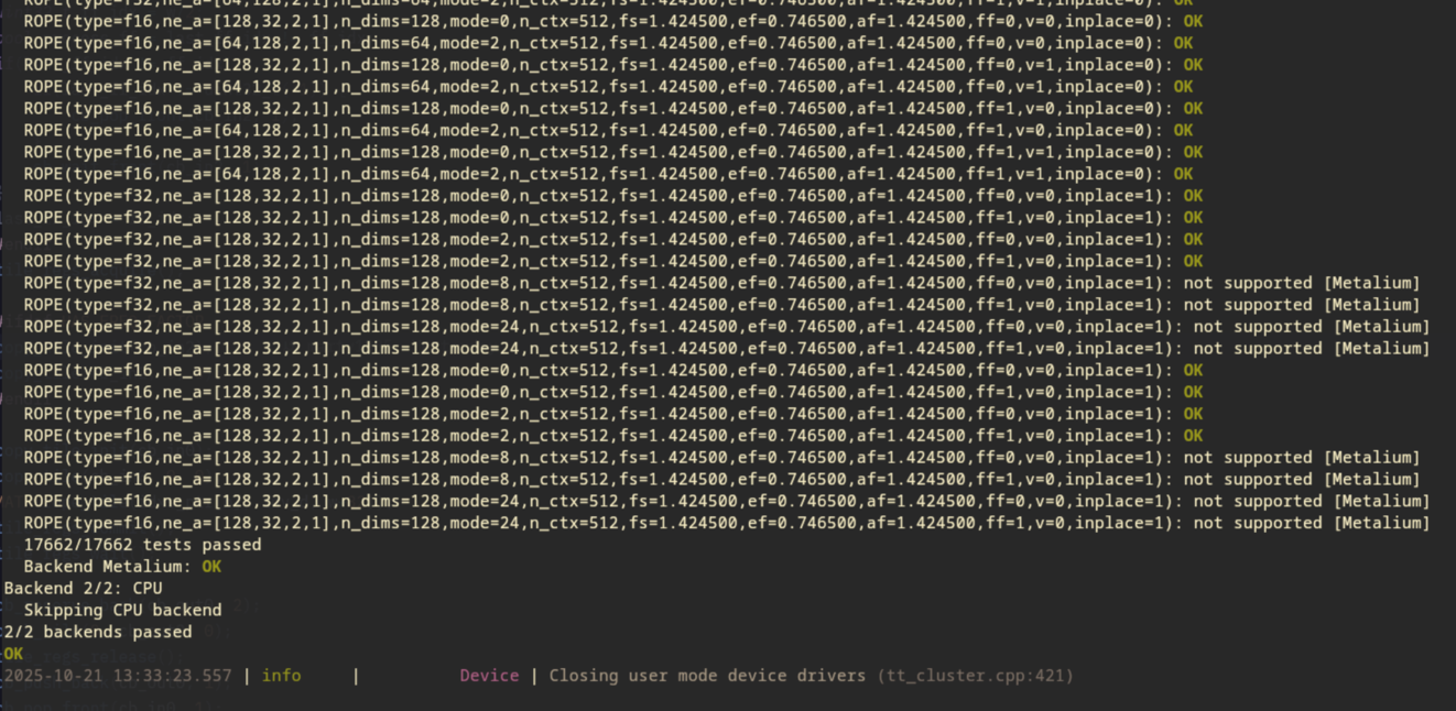 Yeah that's a VERY long journey getting one operator working on GGML. But hopefully it showcases what it takes, the process and the how to add unsupported operator to TTNN using Metalium. etc. etc.. I have drank my share of beer and coffee to get things going. Hope you learned something.
