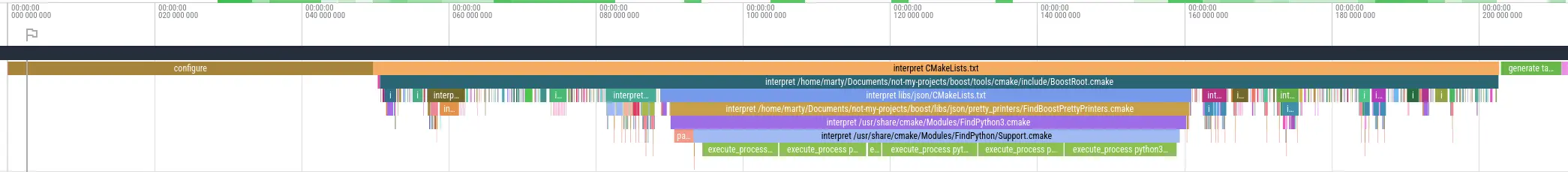 Also have a profiler to see build performance now. dmake is so fast in practice thanks to aggressive caching, that even for giant projects like boost, the configuration time is minimal and dominated by running Python and collecting compiler information (which I have no influence over).